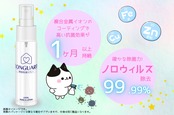 散布した場所にナノサイズの金属イオン粒子が電子レベルで表面に付着し、24時間イオンを放出し続け周囲のウイルスや臭いの原因を不活化させます。